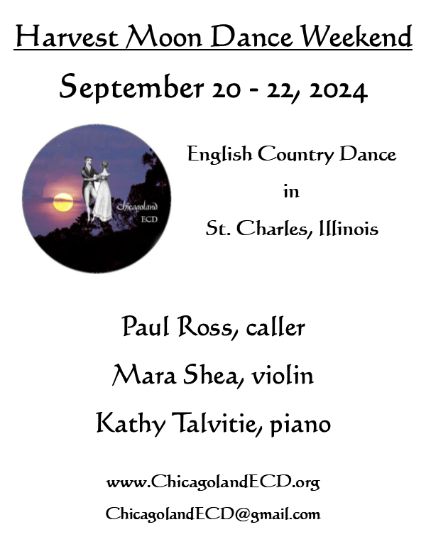 Our eighth Harvest Moon Dance Weekend was held September 20 to 22, 2024, at the beautiful Baker Community Center in St. Charles, Illinois. Thank you to our wonderful artists, and to all our dancing friends who attended and supported the weekend. Stay tuned for news of next year’s weekend plans.